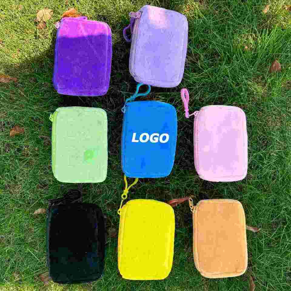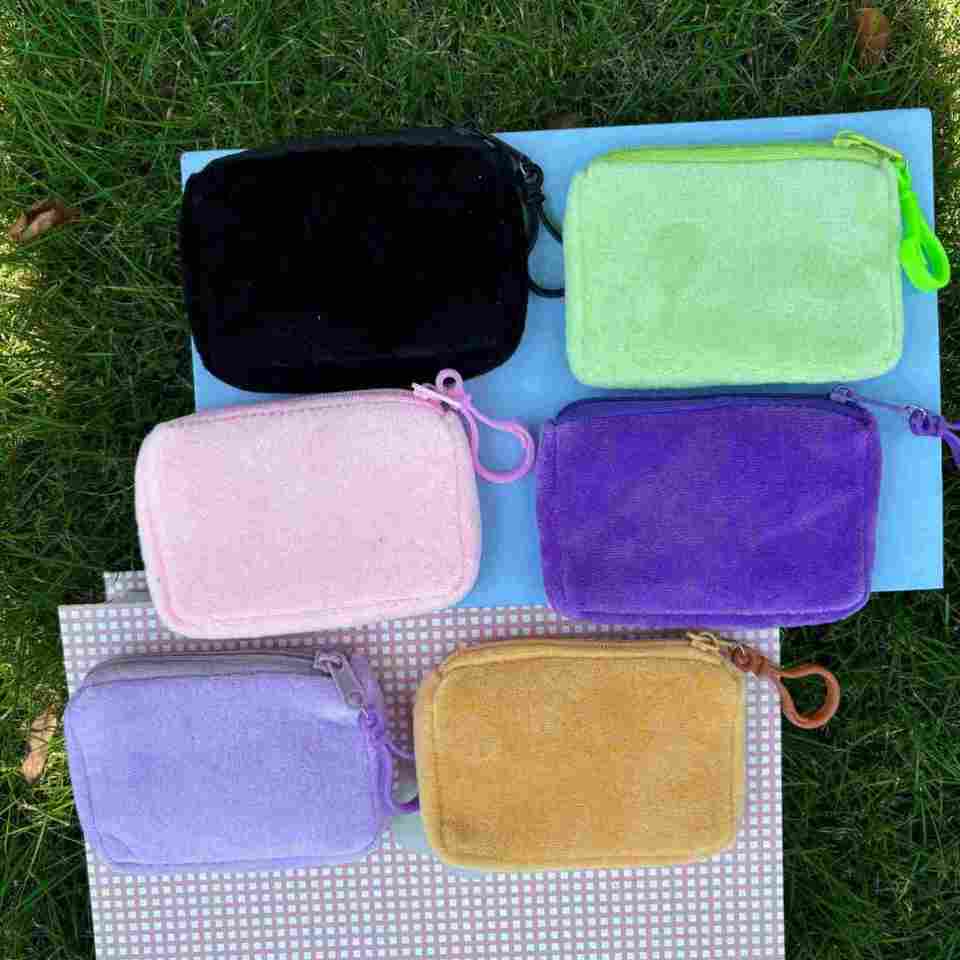 Cute Solid Color Square Plush Coin Purse, Candy Color Earphone Storage Pouch, Mini Zipper Wallet Promotional Gift for Students