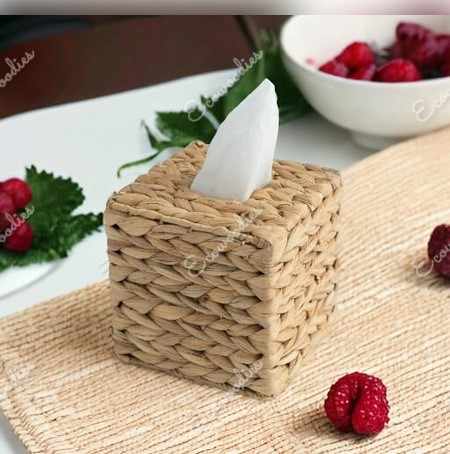 Cute Square Natural Water Hyacinth Tissue Box Table Paper Holder Tissue Case Napkin Holder Tissue Dispenser Boxes Desktop