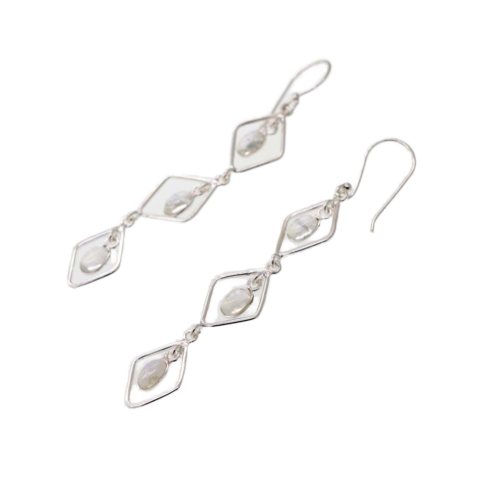 Cute Style Diamond Wire Drop Earrings with Moonstone