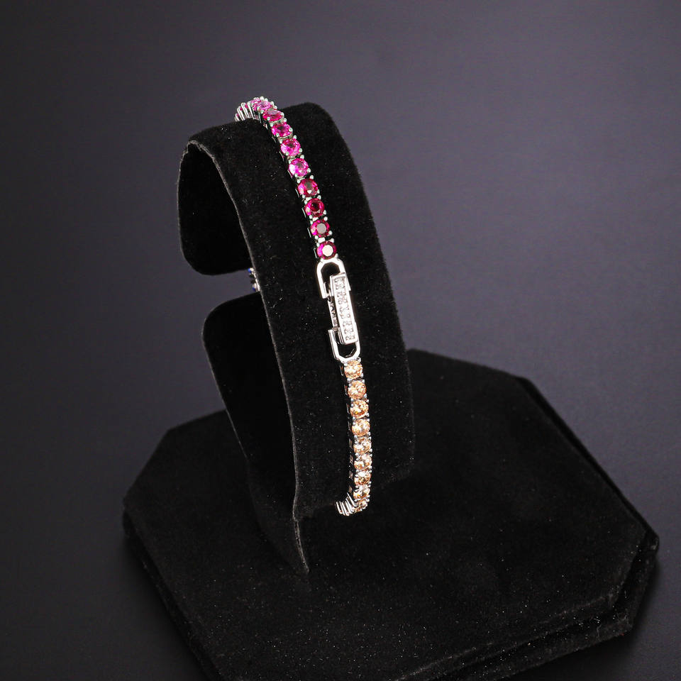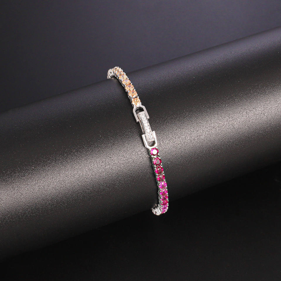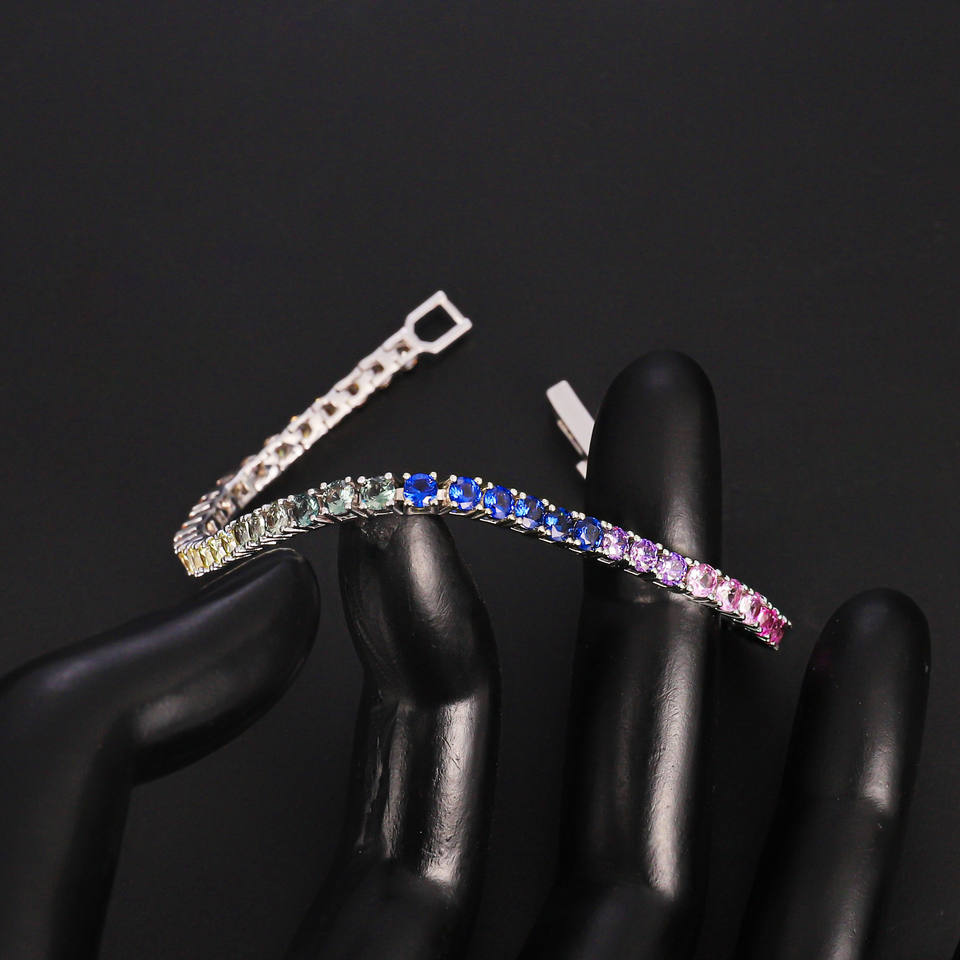 Cute Style Wholesale Fashion Women Joyas Latest Zircon Claw Setting Gradient Colorful Rhodium Plated Rainbow Tennis Bracelet