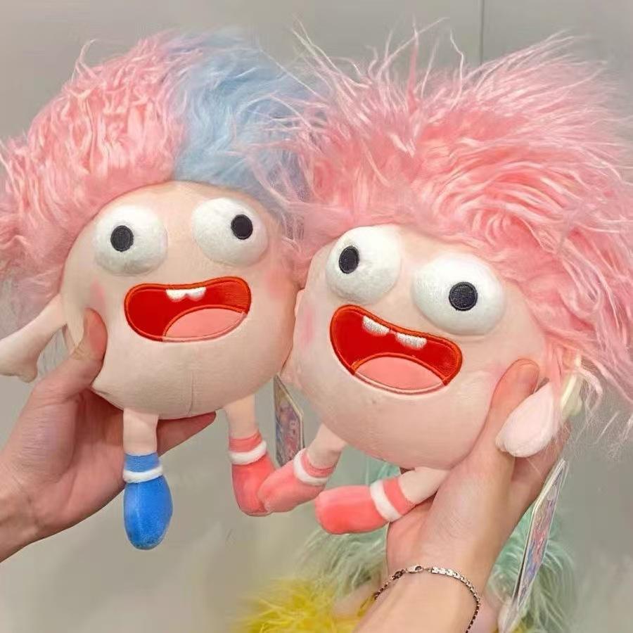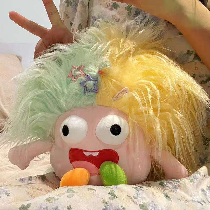 Cute Ugly Funny Big Eyed Expression Fluffy Braided Hair Crazy Plush Doll Comforter for Birthday Parties Gifts Toys for Children