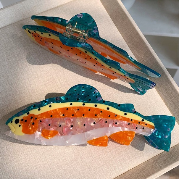 Cute Unique Salmon Fish Hair Claw Clips Large Acetate Splicing Fashion Daily Use Hair Accessories for Women Marine Organism
