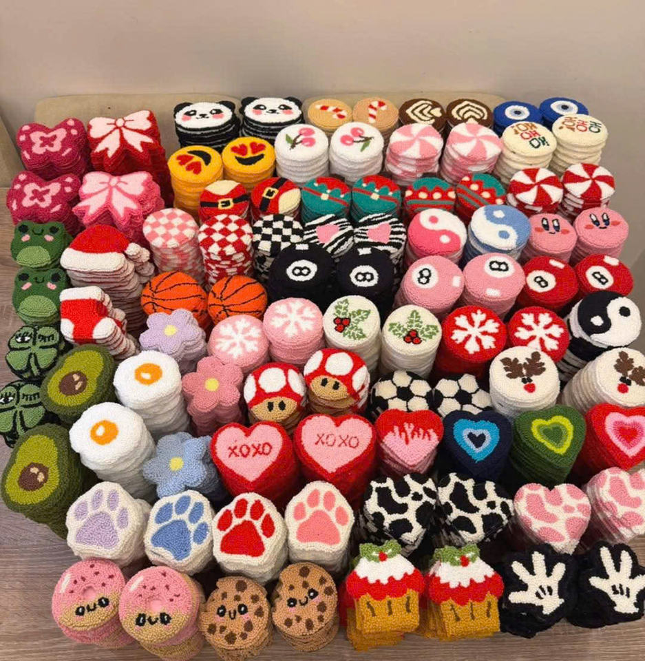 Cute Wholesale Custom Flower Punch Needle Coaster Handicrafts for Mother's Day Mats & Pads Handmade Mug Rug Coasters