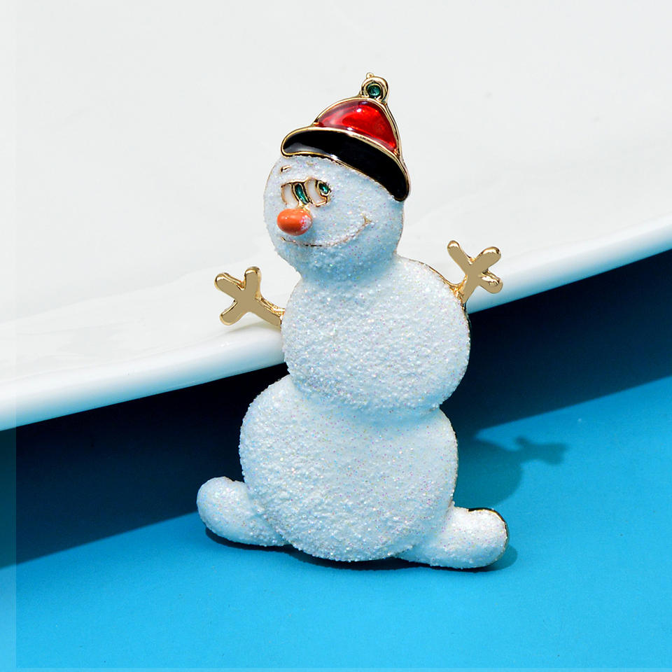 Cute Winter Christmas Jewelry Accessories Women Corsages White Snowman Shaped Brooch for Clothing Suits