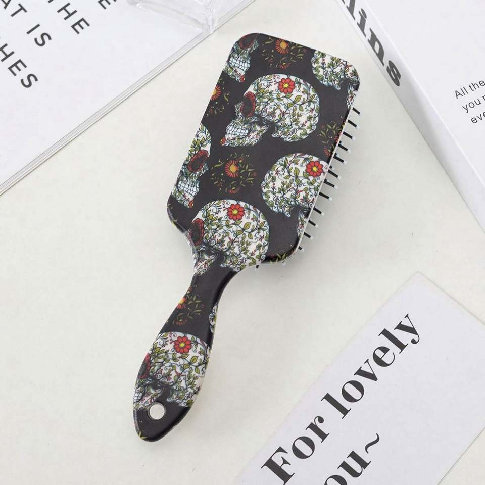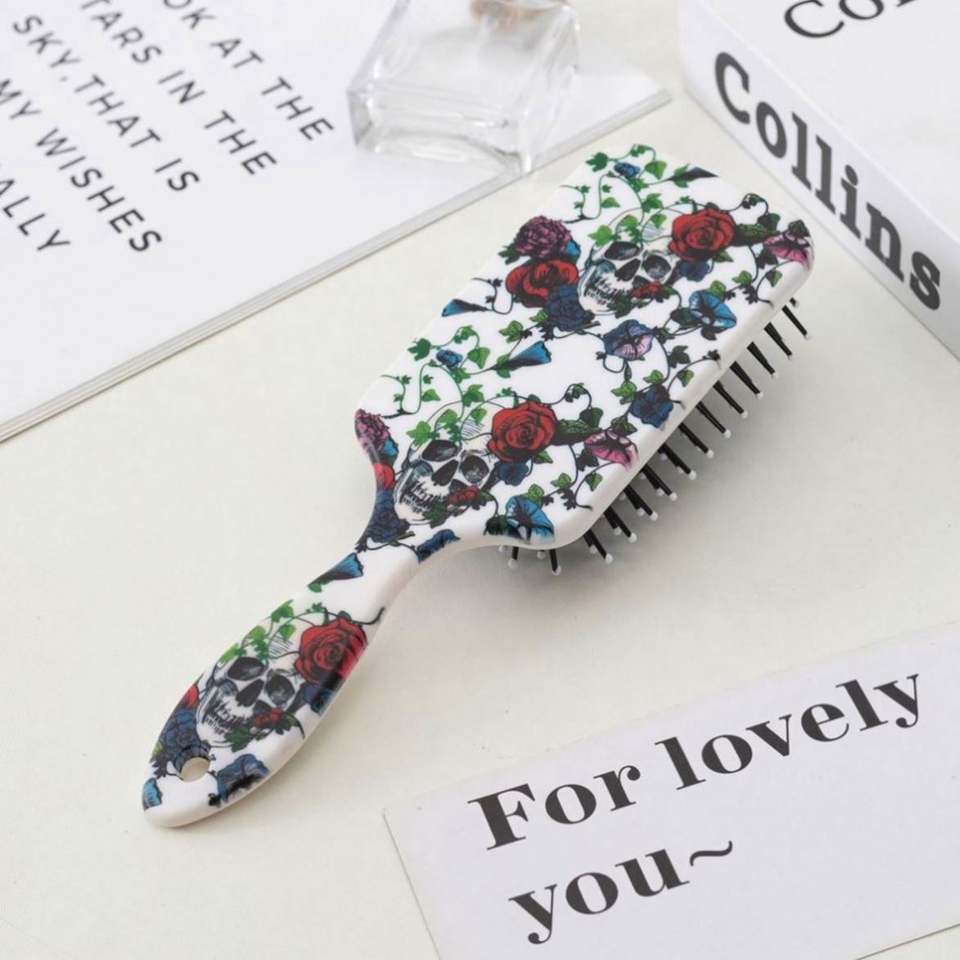 Cute Women Anti-Static Plastic Paddle Brush with Steel Handle Nylon Bristles Scalp Massage Curly Wig Detangling