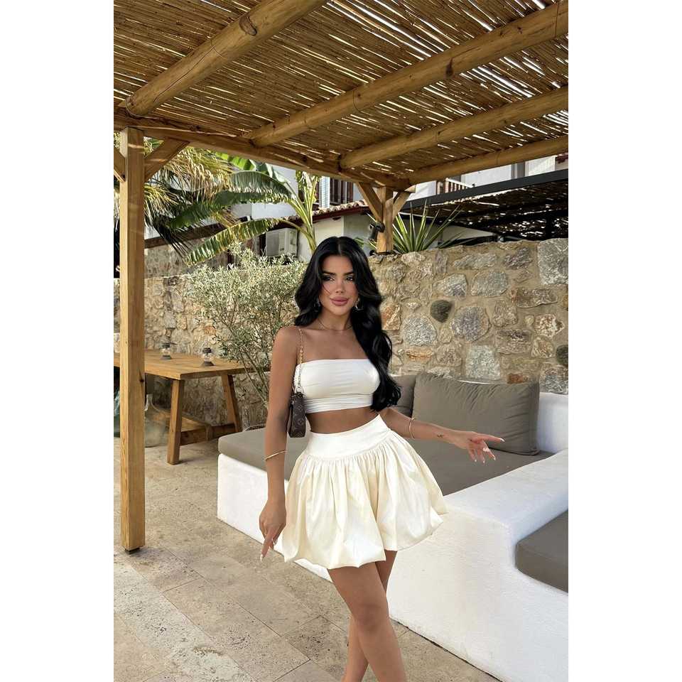 Cute for Cream Satin/Silk/Cotton Balloon Skirt Print Button Belt Decorations Casual Club Apparel for Spring/Summer Beach XS Size