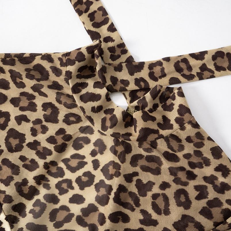 Cutenova D24JP522 Women's Sexy High Waist Bandage Rompers Leopard Print Mesh Knitted Tights Bodysuits Ladies Bodycon Jumpsuits