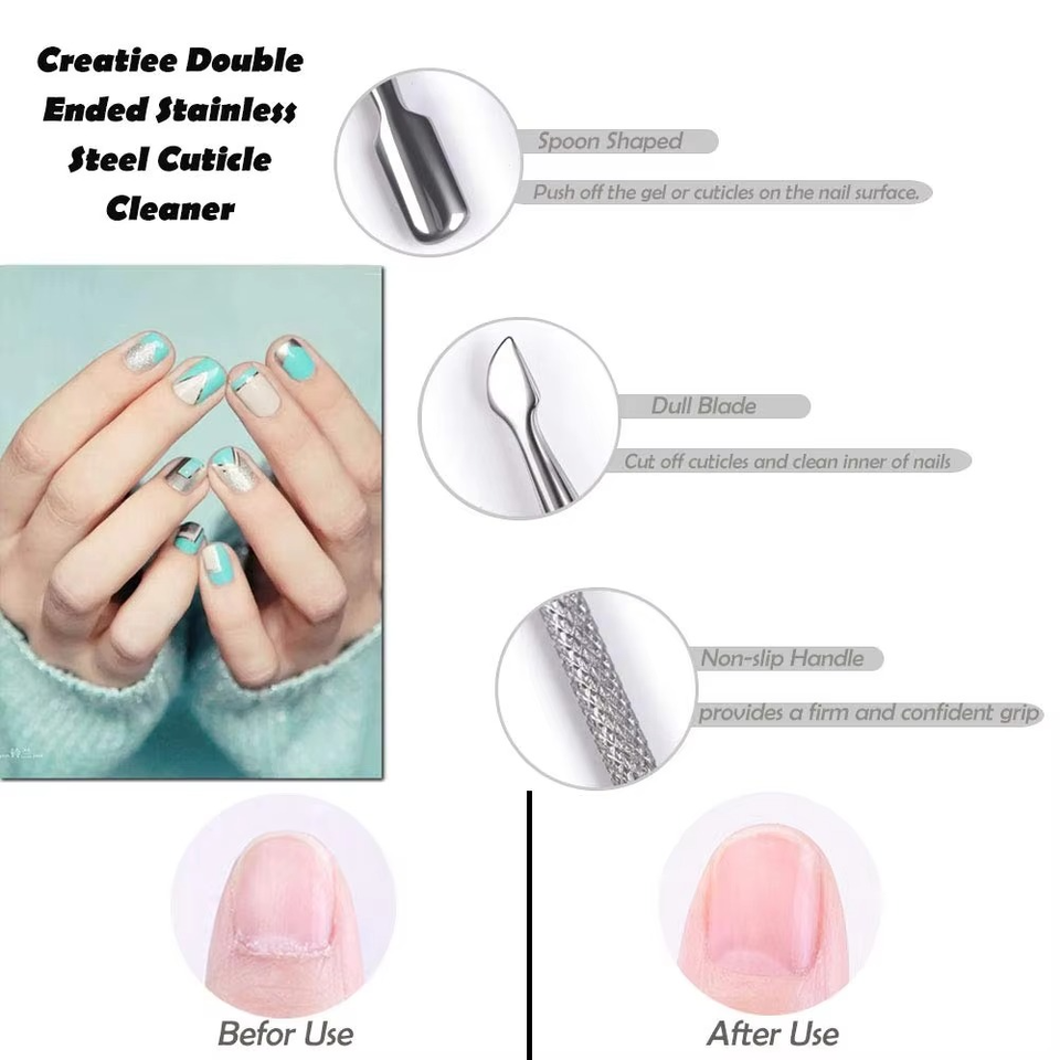 Cuticle Pusher Remover and Cutter Creatiee Double Ended Stainless Steel Cuticle Cleaner Nail Gel Polish Removal Manufacturer