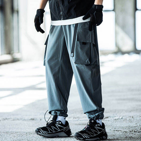 Cyberpunk Ninja Pants Techwear Bandage Zipper Pockets Cargo Pants Joggers Mens Black Hip-hop Streetwear Trousers