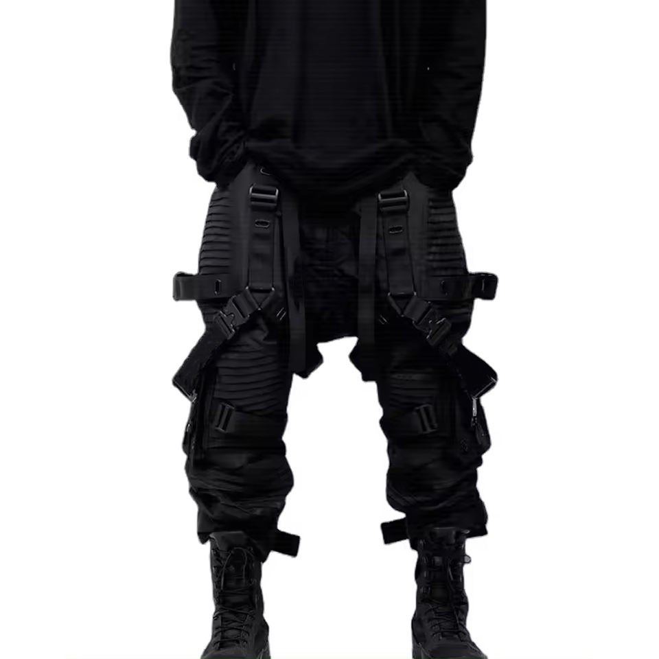 Cyberpunk Ninja Pants Techwear Bandage Zipper Pockets Cargo Pants Joggers Mens Black Hiphop Streetwear Trousers