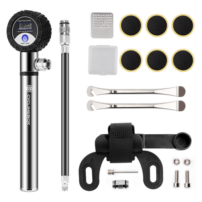 Cyclingbox Bicycle Pump Kit Aluminum Alloy Mini Pump With Digital Gauge Tire Repair Tools Set For Bike Maintenance