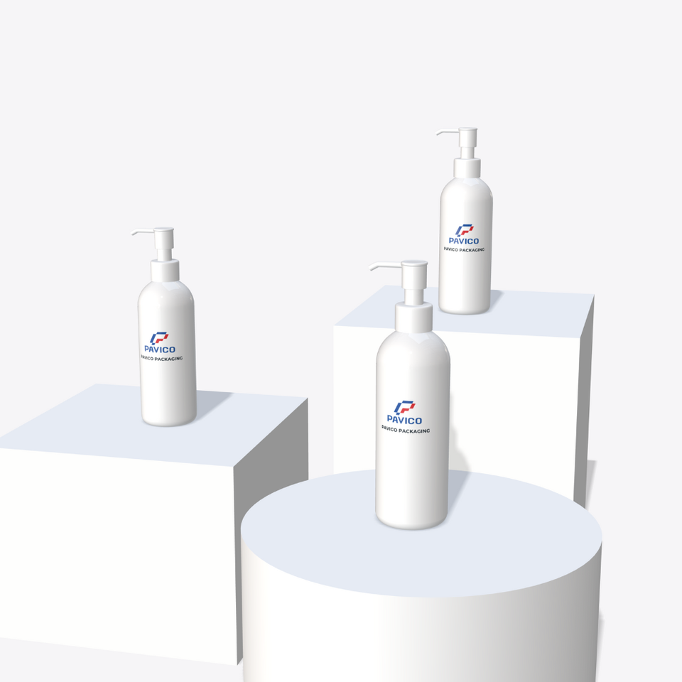 Vietnam Manufactory HDPE Cylinder Shampoo Bottles with PP Pump Custom Logo Pavico Brand OEM/ODM for Cosmetics Packaging