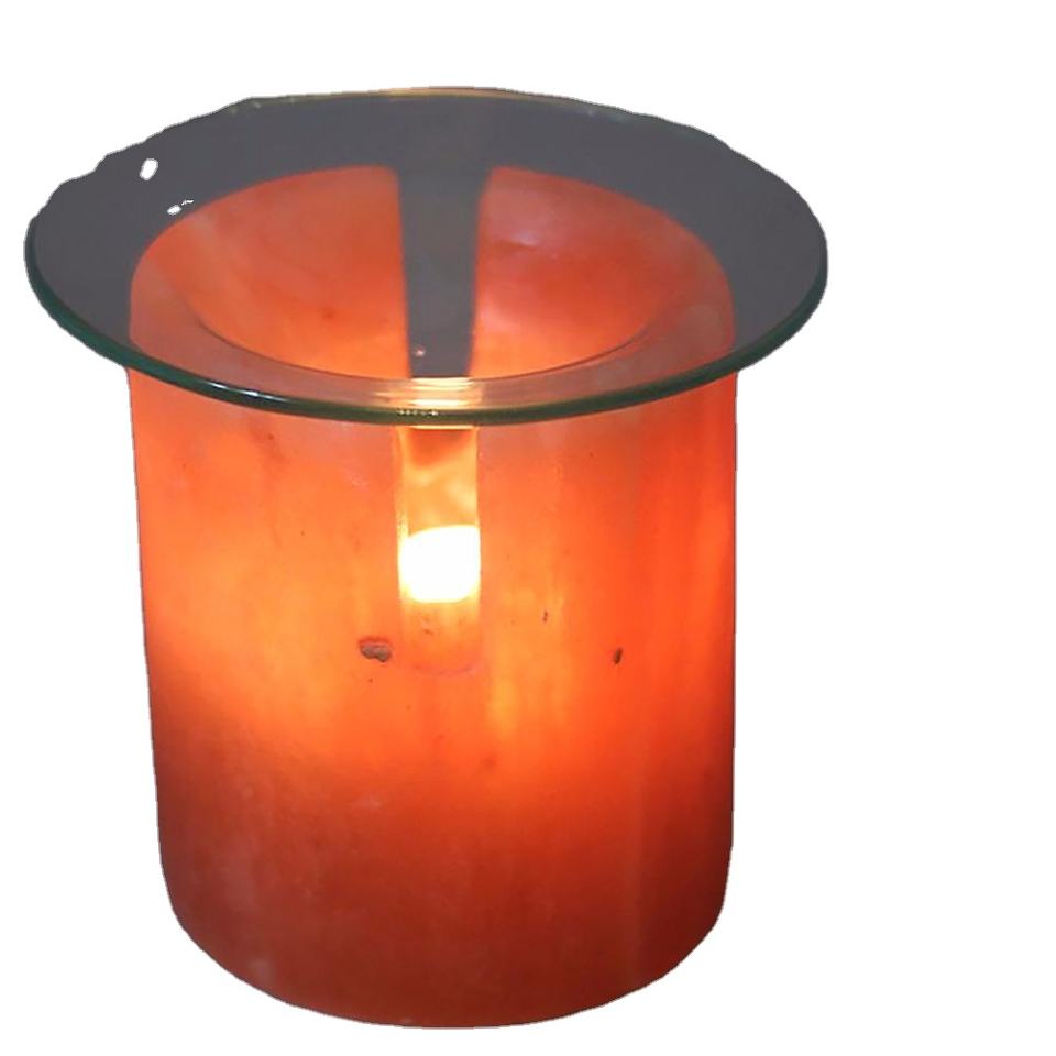 Cylinder-Shaped Natural Himalayan Pink Salt Lamp Carved Flower Tea Decoration Love Style Candle Holder for Home Natural Crafts