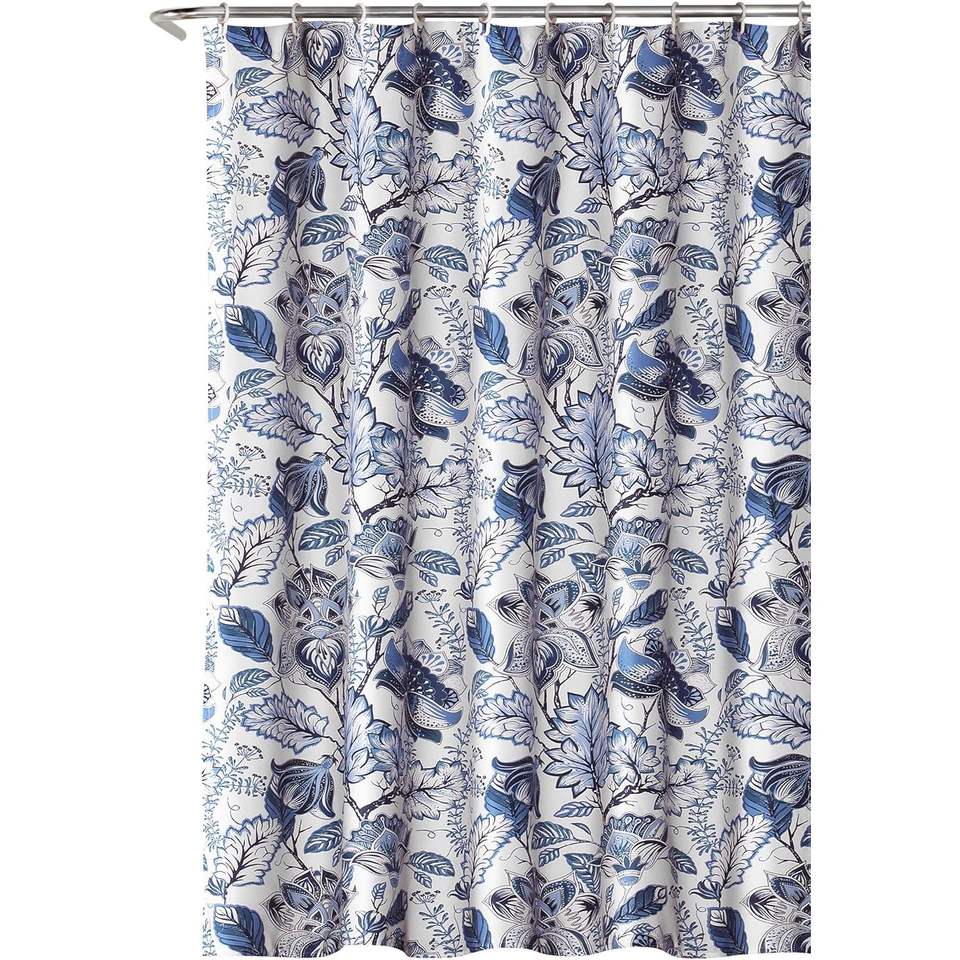 Cynthia Jacobean Blue Shower Curtain Floral Print Design 3D Fabric Waterproof Home Decor with Custom Hooks in Stock China