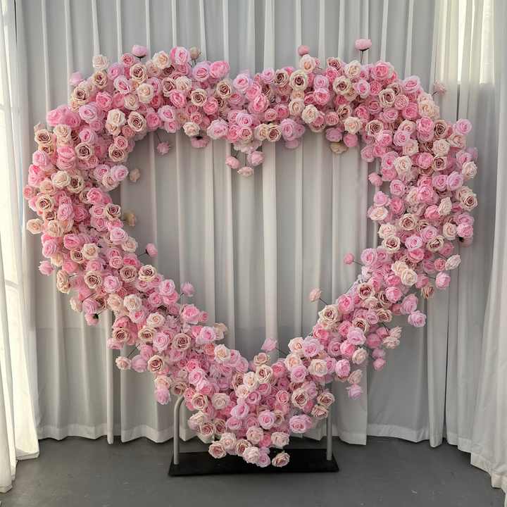 D-FHA036 Wedding pink flower heart shape arch artificial flower heart arch backdrop heart flower arch centerpiece silk for decor
