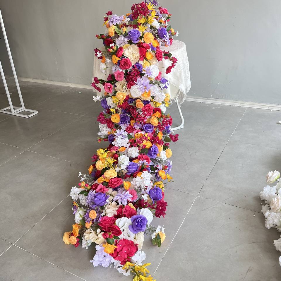 D-FR121 Wholesale white flower runner table rose flower runner aisle wedding flower runner artificial silk for event decoration