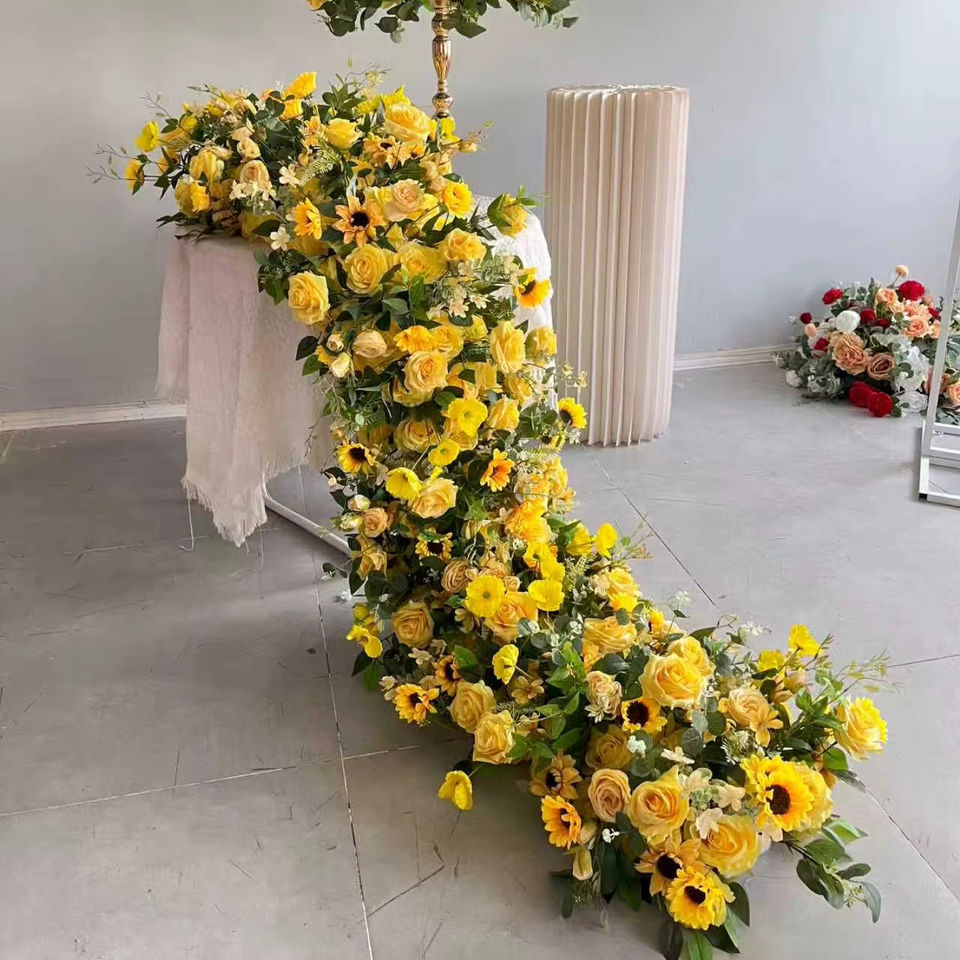 D-FR125 Wedding yellow flower runner table greenery flower runner aisle 200cm flower runner artificial silk for event decoration