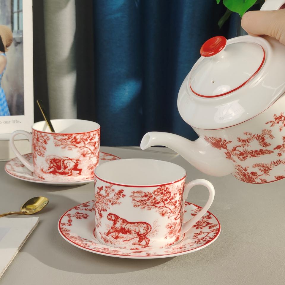 D Series Luxury 7-Piece Bone China Coffee & Tea Set with 200ml Capacity Sustainable for Cafe Use
