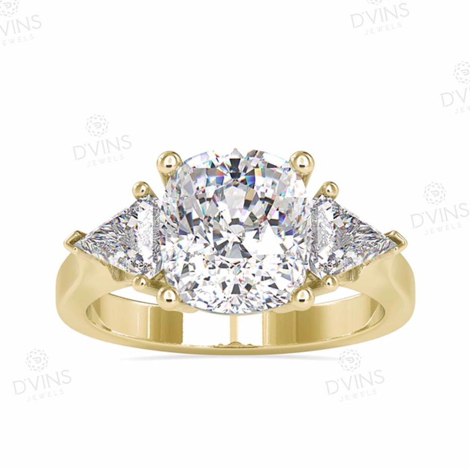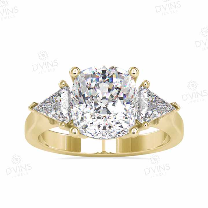 D'VINS JEWELS 1.08 Ct. Cushion Diamond Leona Side Triangle Ring 18k Yellow Gold Classic Style for Certified for Anniversary