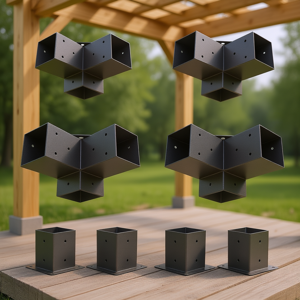 D0100X3LKHJ Pergola Bracket Kit 4pcs 3-Way 5mm Thick Powder Coated Heavy Duty Corner Bracket for Wooden Beams Patio
