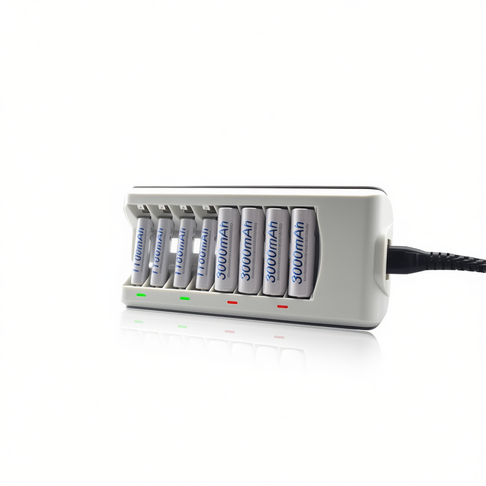 D0100XF0GIJ 8 Slot Battery Charger For Ni-Mh Ni-Cd AA AAA Rechargeable Batteries With Led Indicator