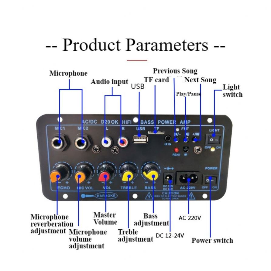 D20 Digital Card Amplifier Board 10 Inch 12V 24V 220V Car Audio Bass with Reverb Amplifier Speaker Motherboard D20