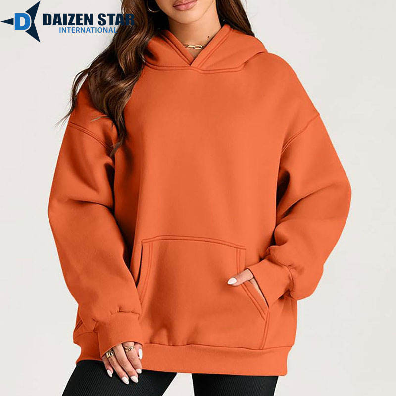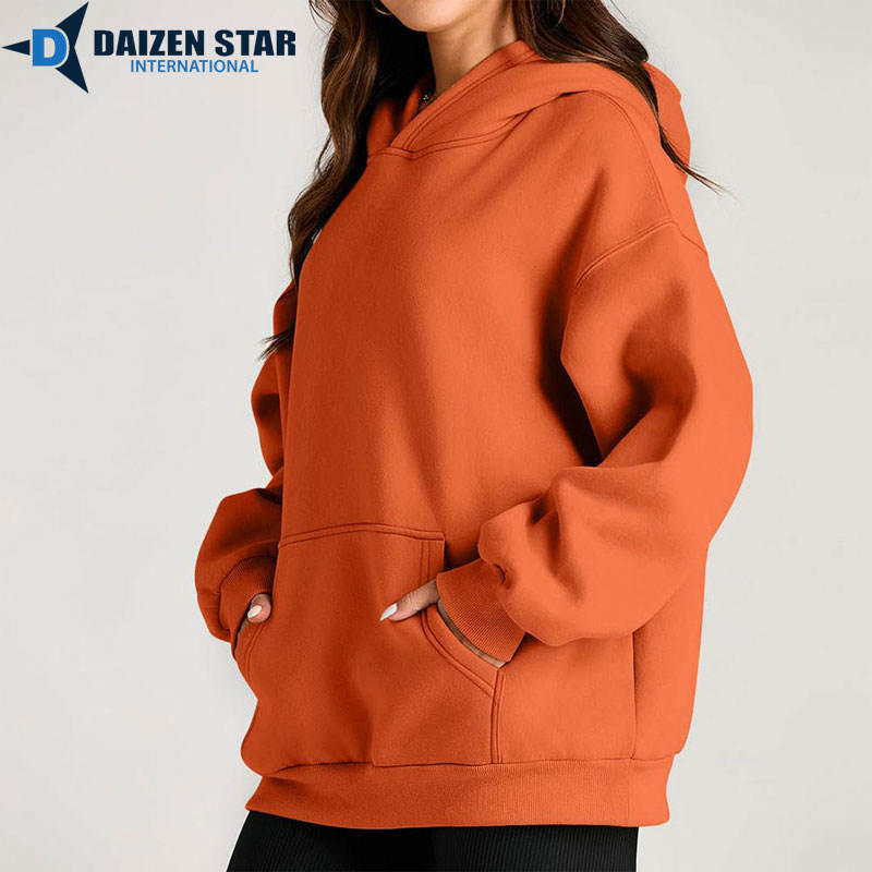 DAIZEN STAR INTERNATIONAL Women's Eco-Friendly Anti-Wrinkle Hooded Pullover Hoodie Solid Color 100% Cotton Fleece Quick Dry