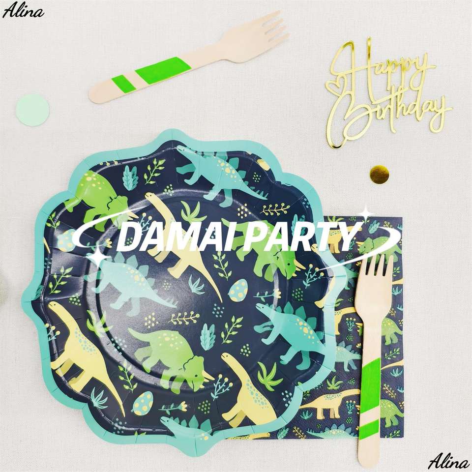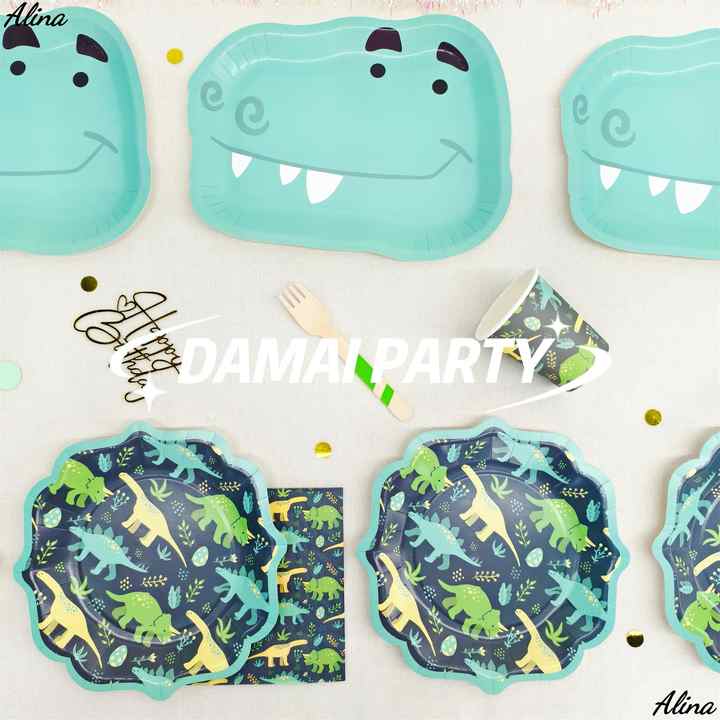 DAMAI Animal Premium Dinosaur Tableware Set Kids Boys Birthday Party Supplies Disposable Dinosaur Party Napkins Cups Plates