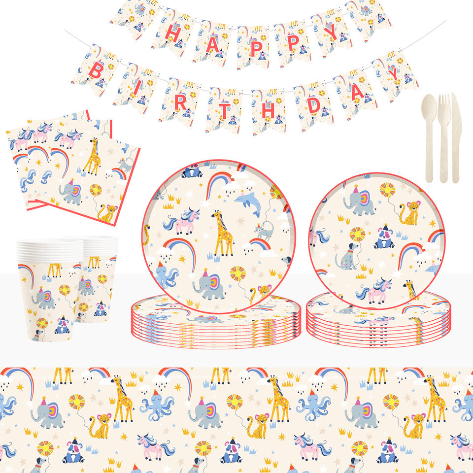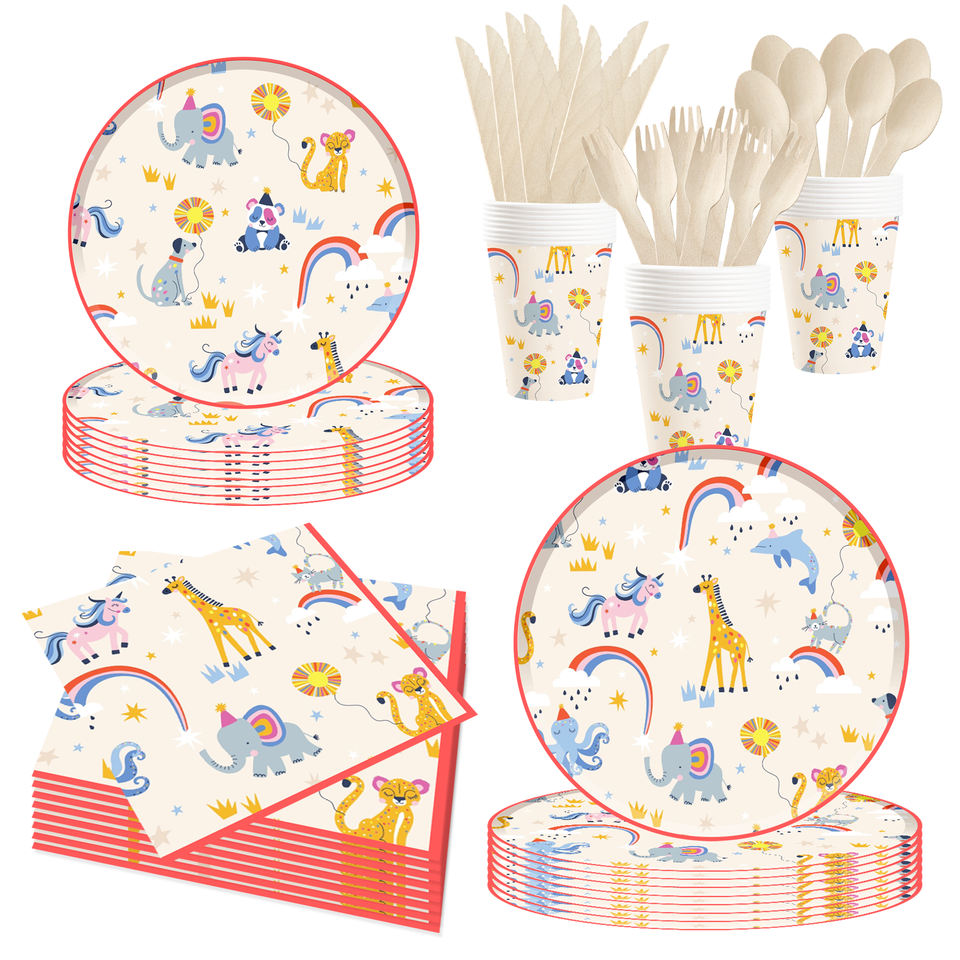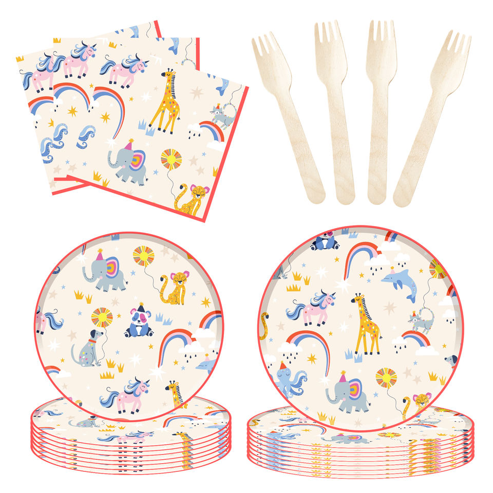 DAMAI Animals Theme Birthday Party Tableware Set Birthday Party Decorations Animals Disposable Plates Napkins Set