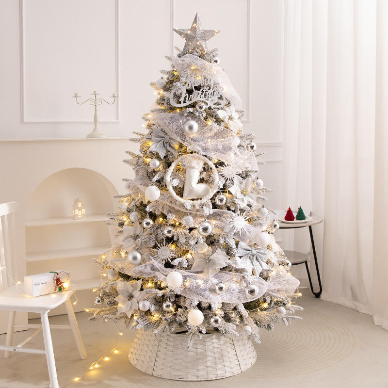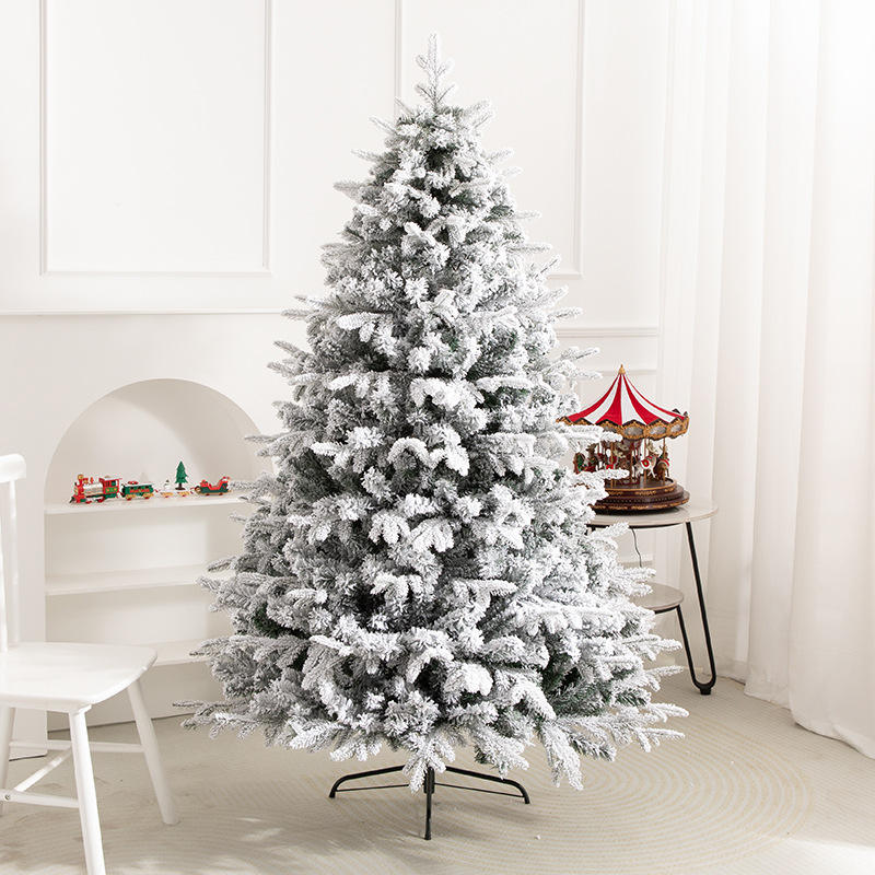 DAMAI Artificial Christmas Tree with LED Lights Snow Flocked Full Prelighted Xmas Tree Foldable Stand