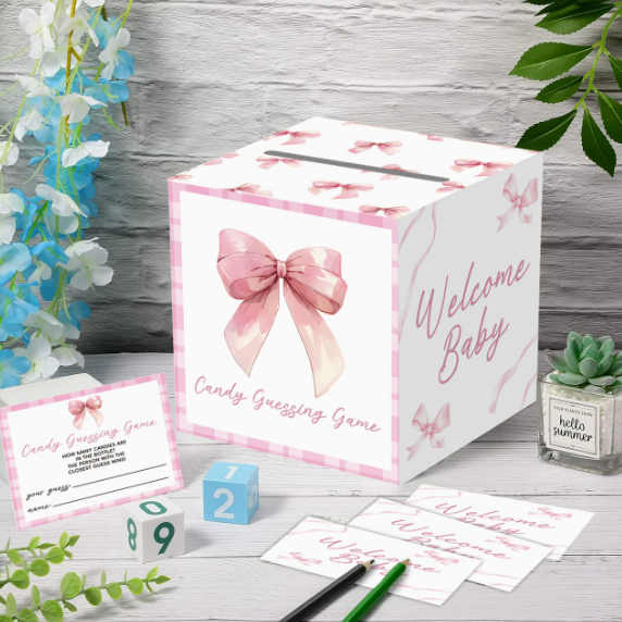 DAMAI Child Hot Selling Baby Shower Gender Reveal Game Card Box Durable Paper Pink Butterfly Blue Elephant Design