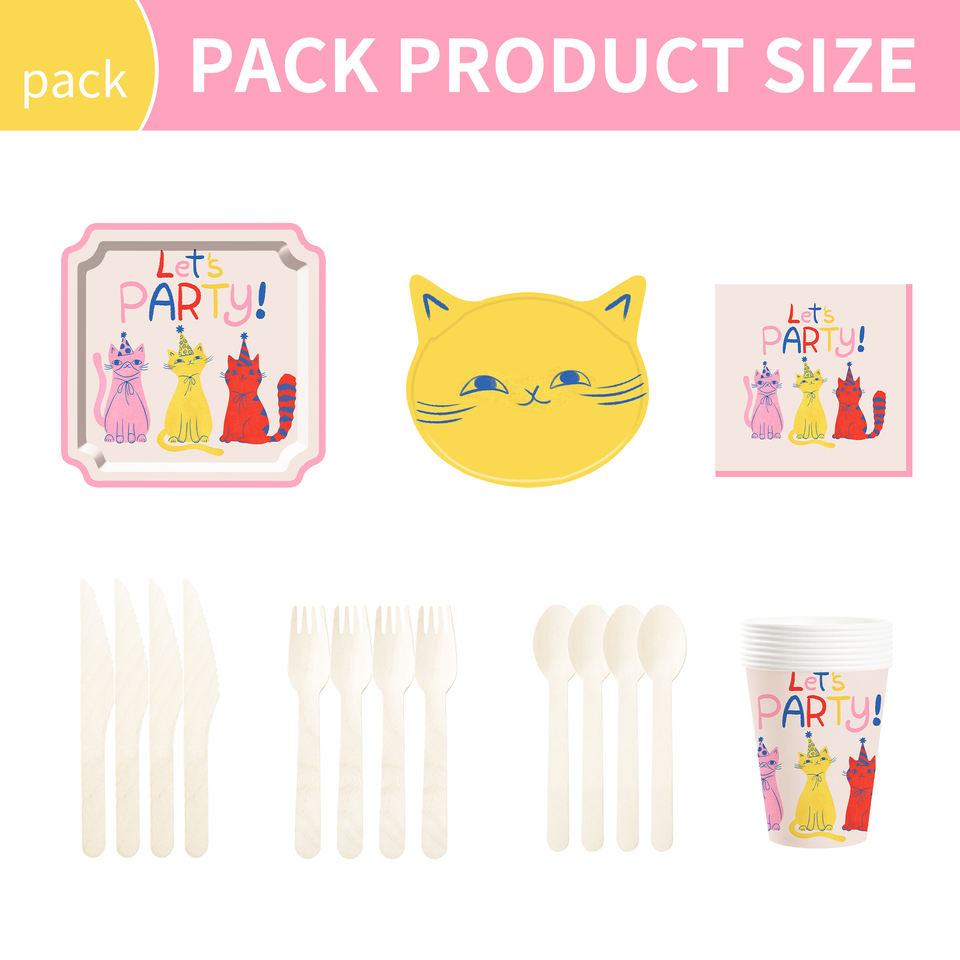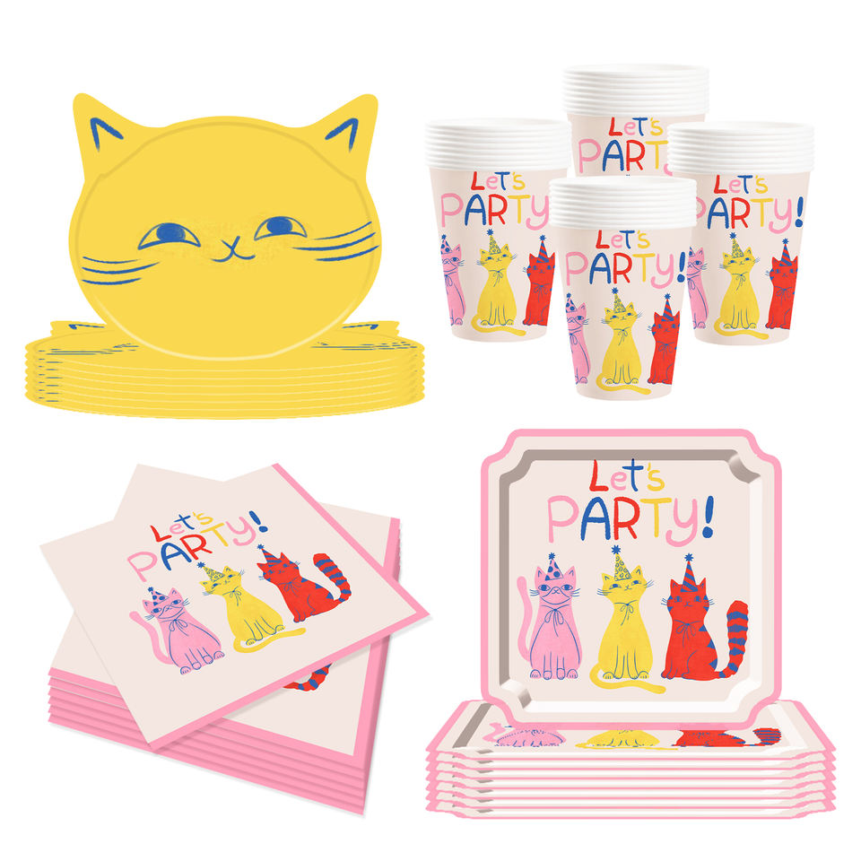 DAMAI Cat Party Set Party Tableware Children's Birthday Pets Including Paper Plates Napkins Tablecloths Cups for 8 Guests