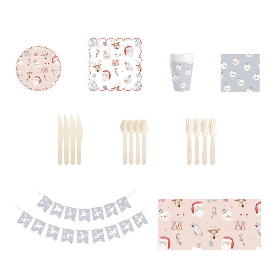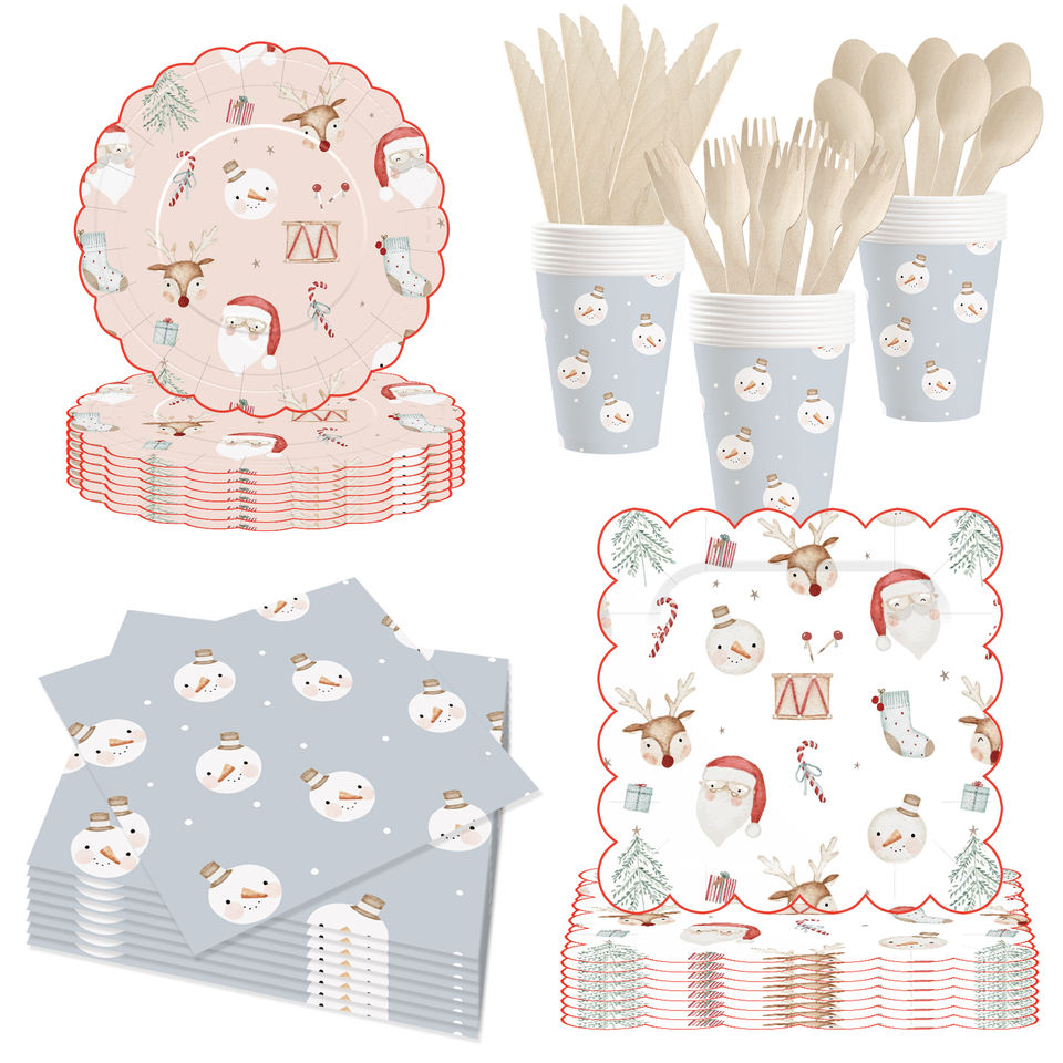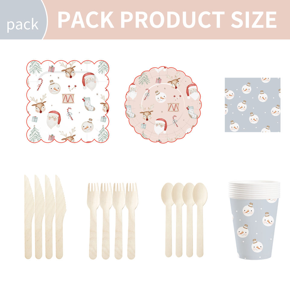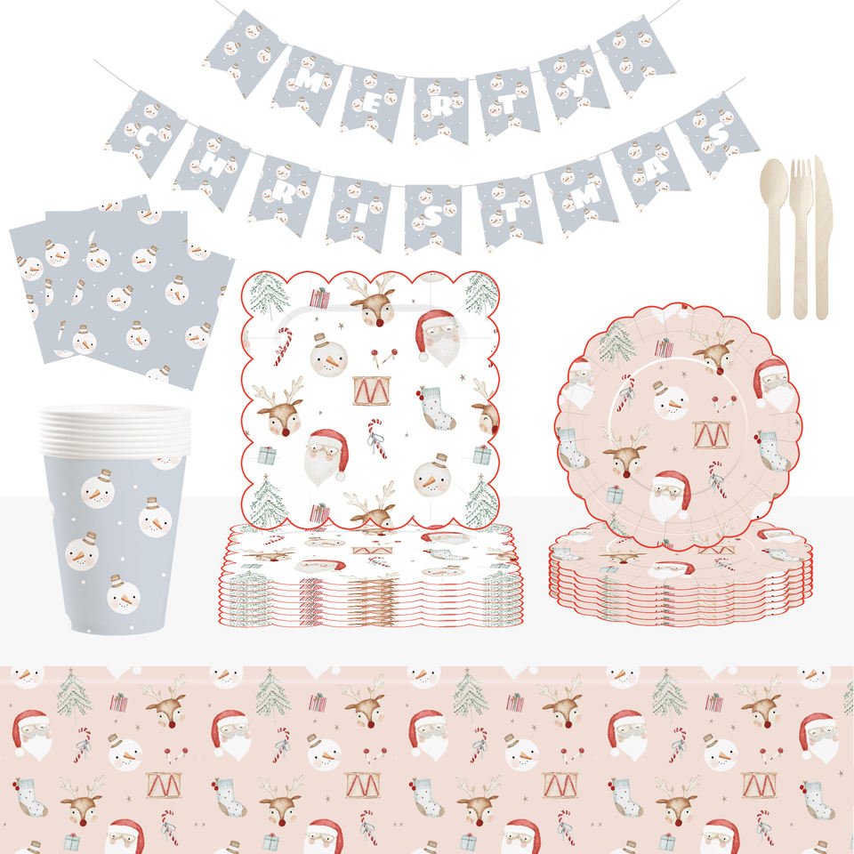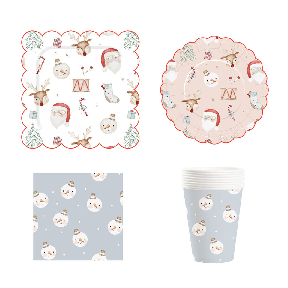DAMAI Christmas Customized Party Tableware Set Disposable Christmas Santa Pattern Paper Plates Cups Napkins for Christmas Party