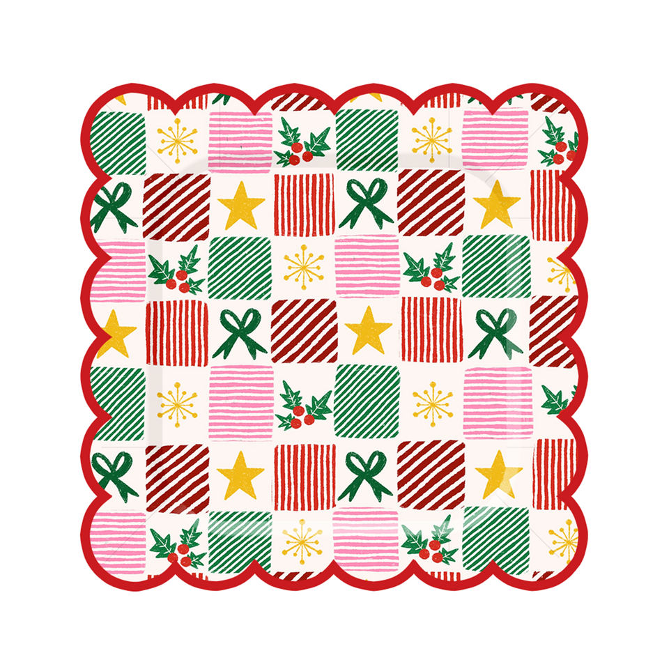 DAMAI Christmas Customized Party Tableware Set Disposable Christmas Santa Ring Bow Knot Star Gift Pattern Paper Plate