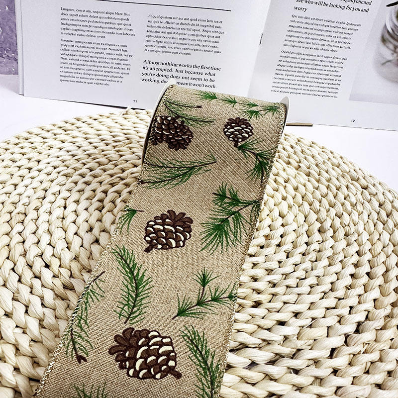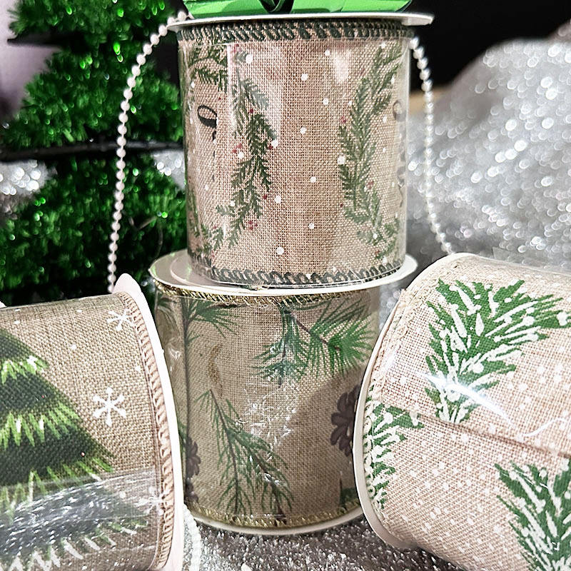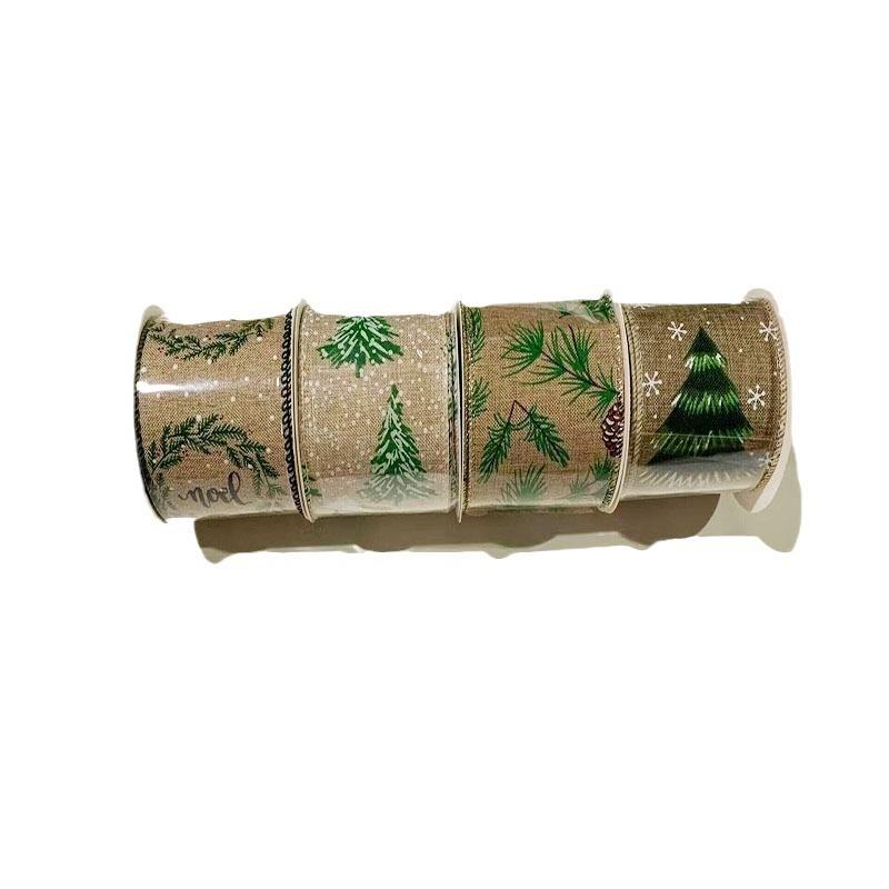 DAMAI Christmas Wired Edge Ribbon Green Christmas Tree Craft Ribbon Wired Fabric Ribbon for Wrapping DIY Bow Wreath Craft Making