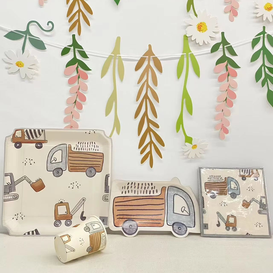 DAMAI Construction Themed Party Tableware Set Kids Birthdays Disposable Plate Paper Cups Napkins for 8 Guests Children Birthday