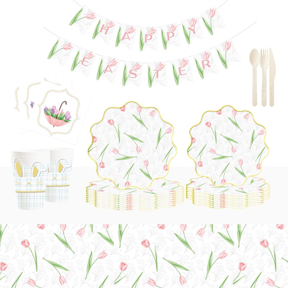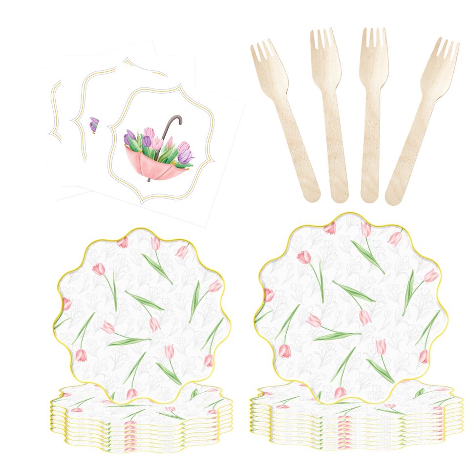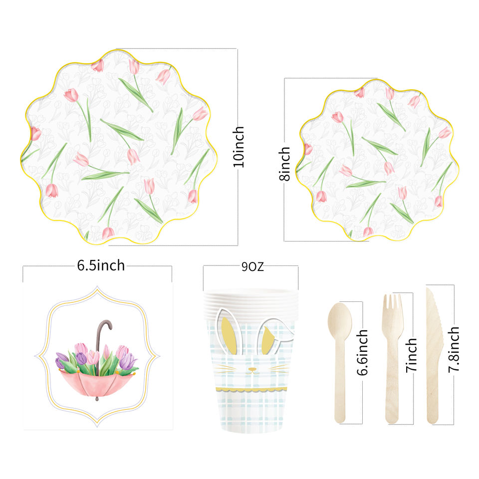 DAMAI Custom Disposable Paper Plates Flower Theme Party Decorations for Spring Tea Party Tulip Floral Easter Paper Tableware Set