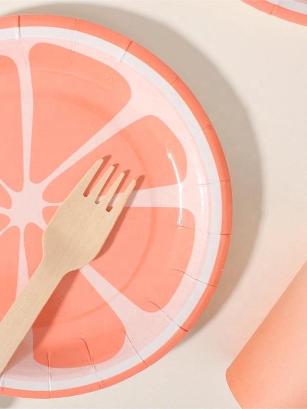 DAMAI Custom Yellow&orange Lemon Paper Plates Dinnerware Cutlery Tableware Set Children's Birthday Tableware