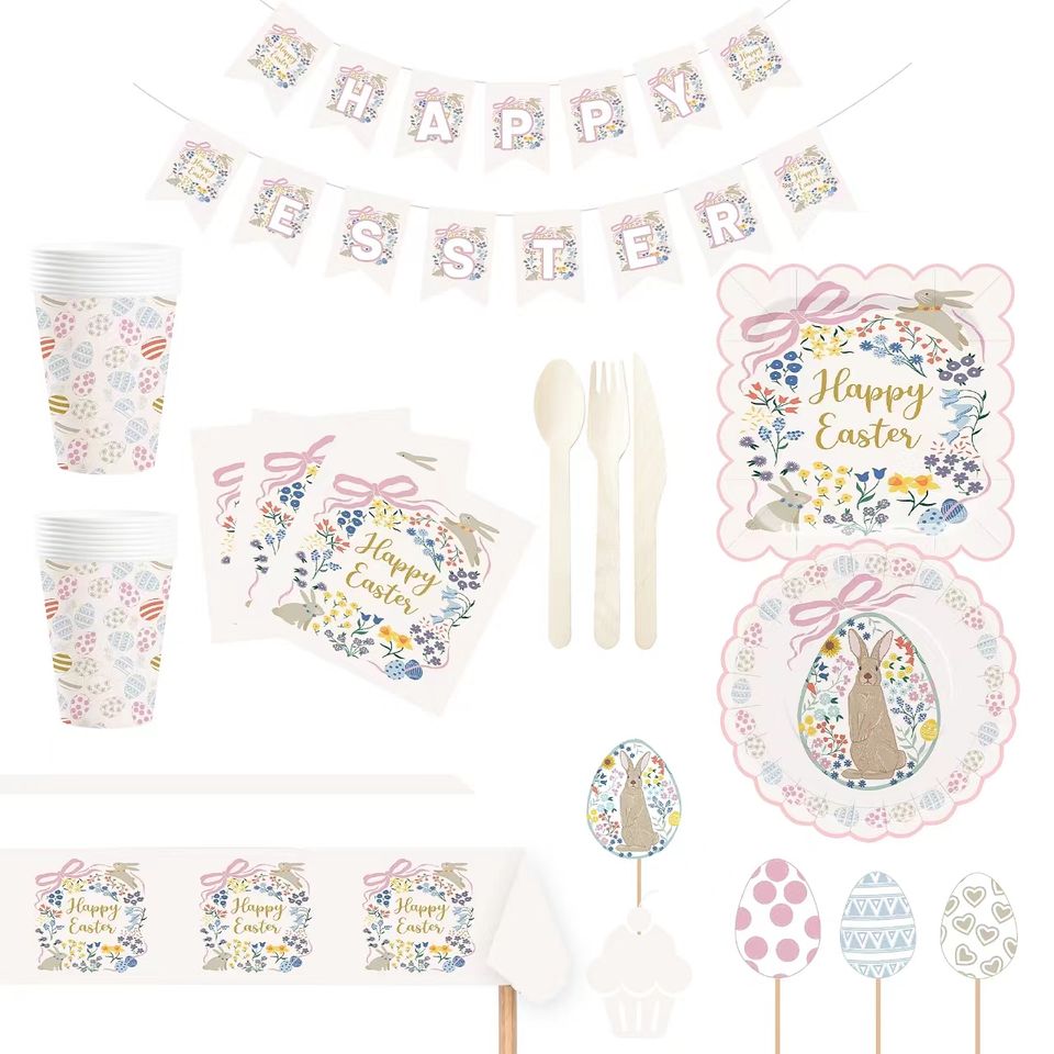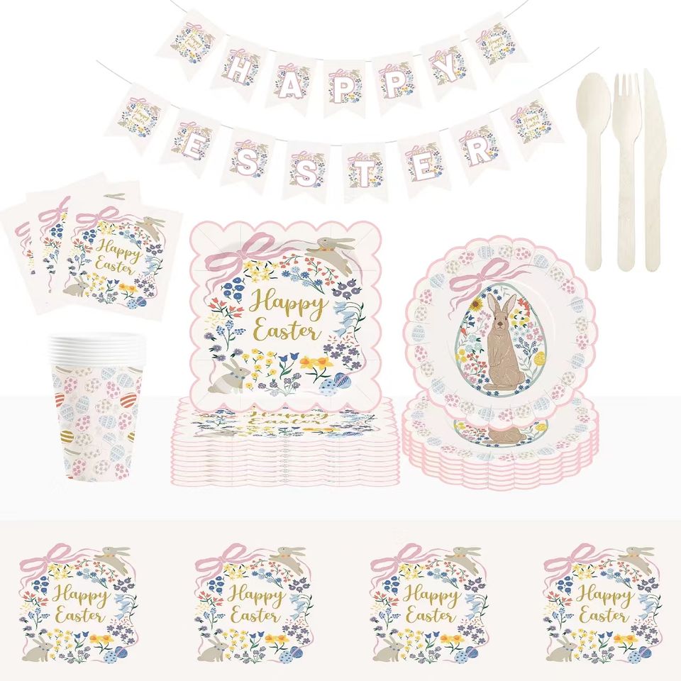 DAMAI Customized Decoration Paper Plate Rabbit Print Disposable Paper Plates Easter Themed Party Tableware Set