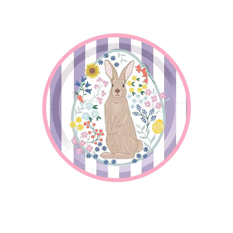 DAMAI Customized Easter Party Decoration Printed Rabbit Pattern Purple Disposable Bunny Easter Egg Party Paper Tableware Set