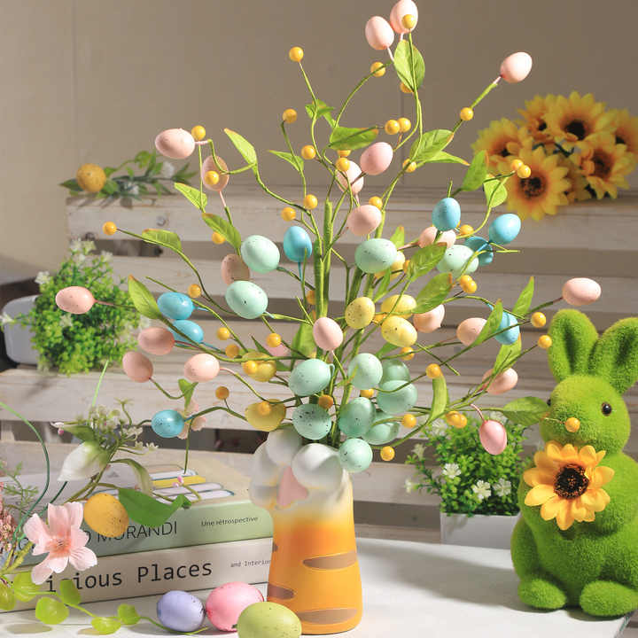 DAMAI Easter Decor Colorful Egg Branch Floral Insertion Ornament Foam Material Non-Toxic Reusable Easter Egg Twig Bouquet Party