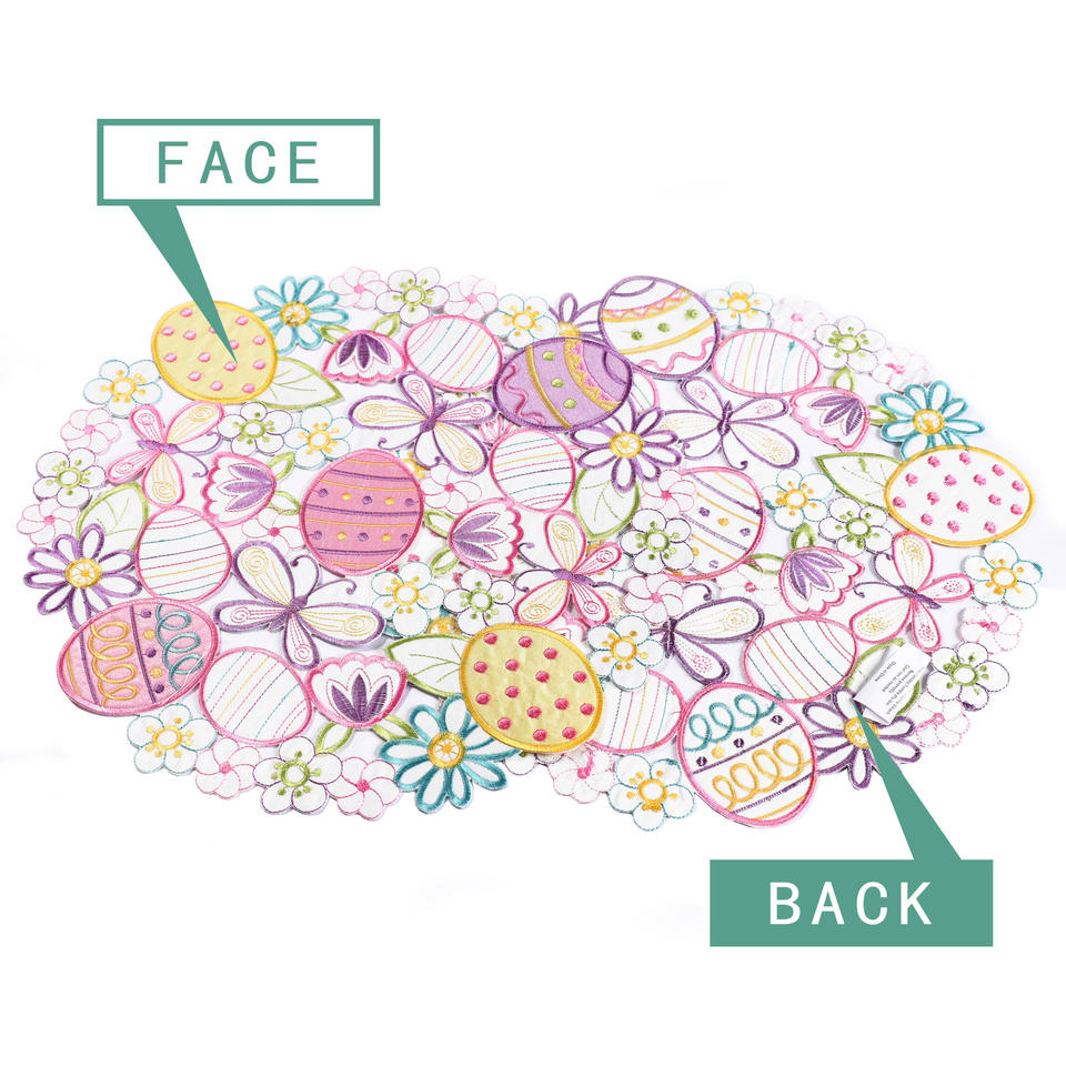 DAMAI Easter Decoration Cutwork Embroidered Spring Flowery Floral Eggs Dresser Scarf for Home Spring Holiday Tabletop Decoration