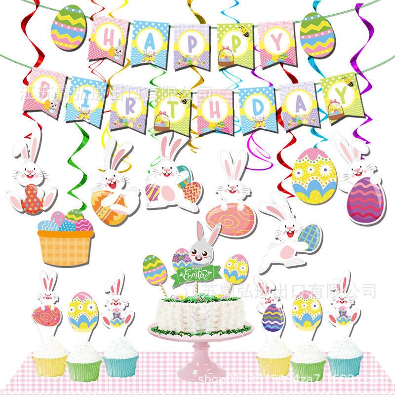 DAMAI Easter Rabbit Hanging Swirl Decorations Easter Egg Bunny Hanging Swirl Decorations for Easter Party Ornaments Supplies