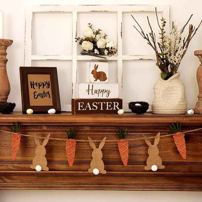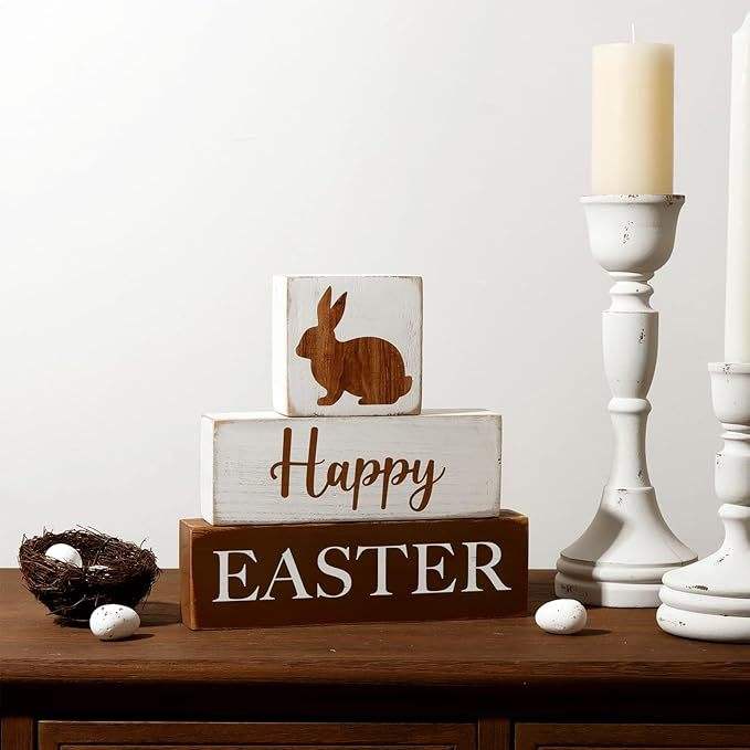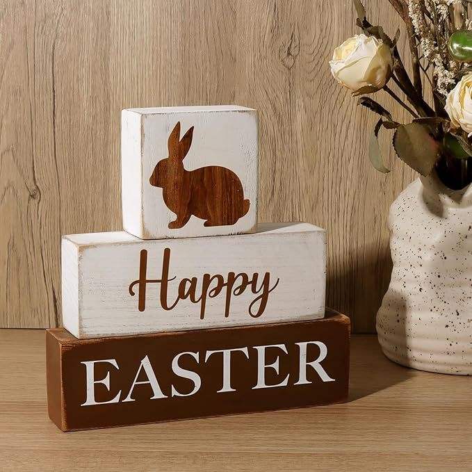 DAMAI Easter Wooden Block Rabbit Ornament Farmhouse Layered Tray Decor for Home Tabletop Decor Easter Craft Wooden Material