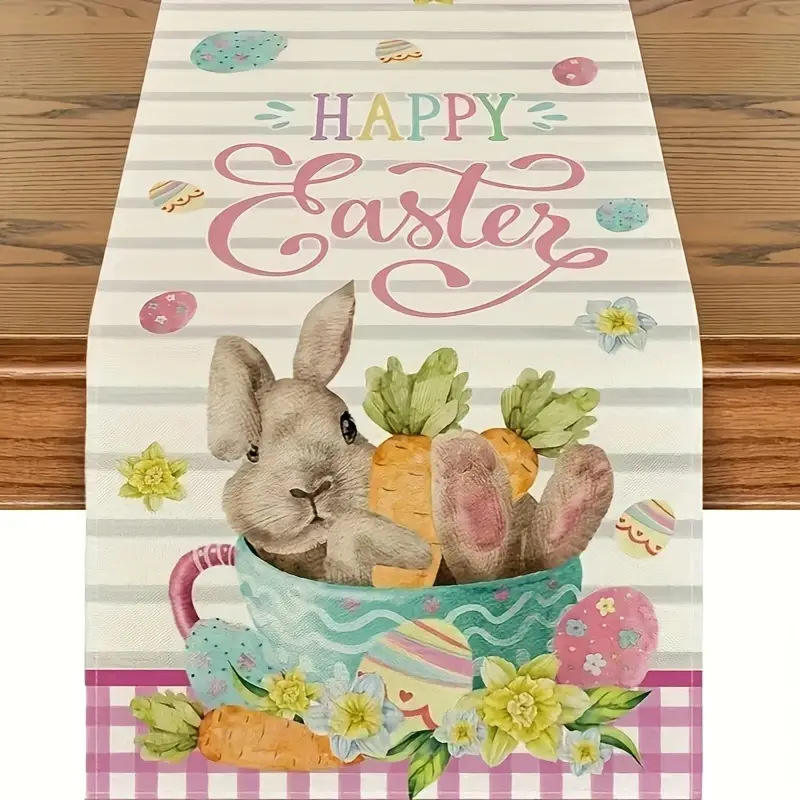 DAMAI Flower Easter Table Runner Spring Summer Seasonal Holiday Kitchen Dining Table Decoration for Home Party Decoration