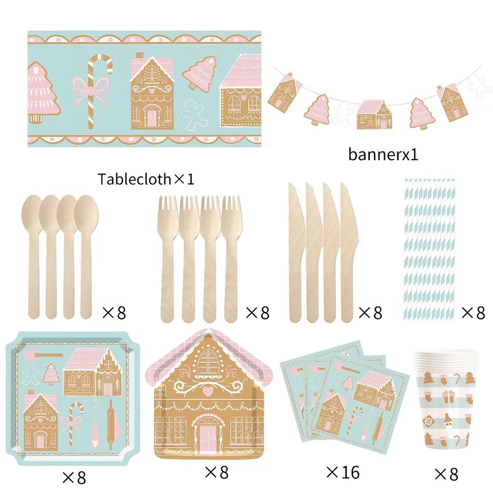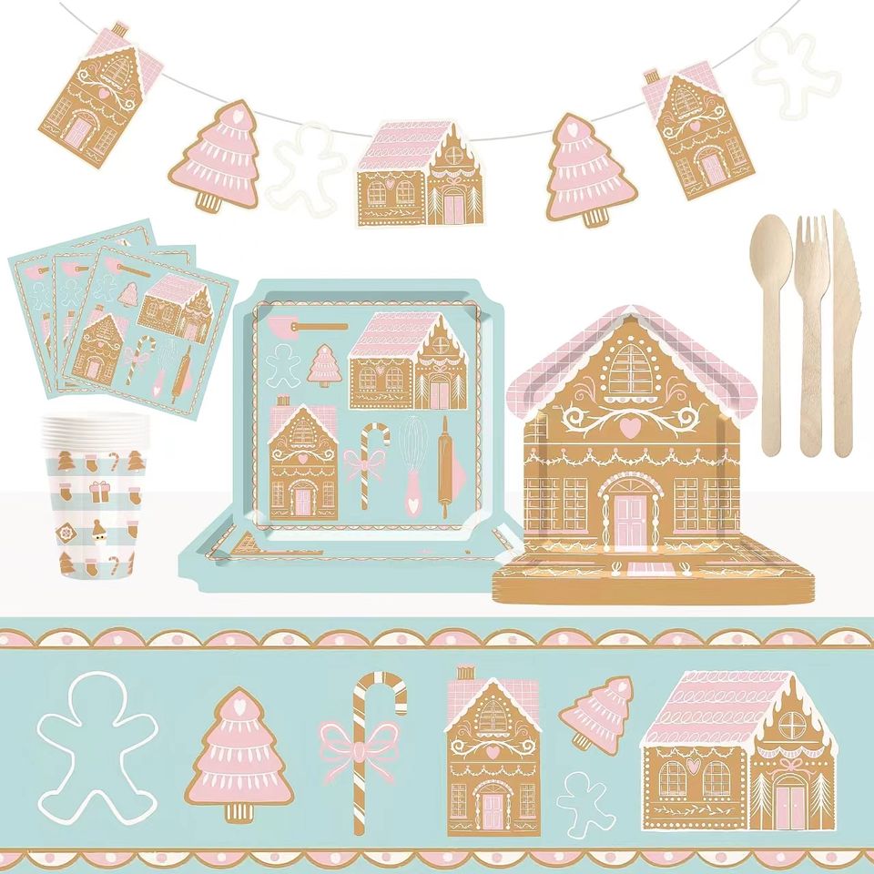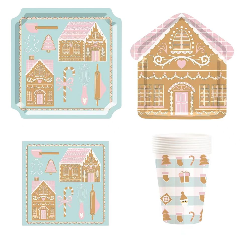 DAMAI Gingerbread House Shaped Paper Plate Set Christmas Party Supplies Table Decorations Christmas Disposable Dinnerware