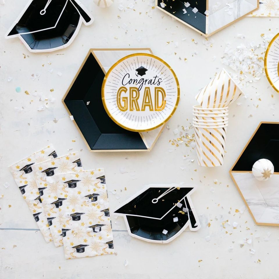 DAMAI Graduation Dessert Paper Plates Disposable Plates Sets Graduation Theme Party Plates Napkins Sets