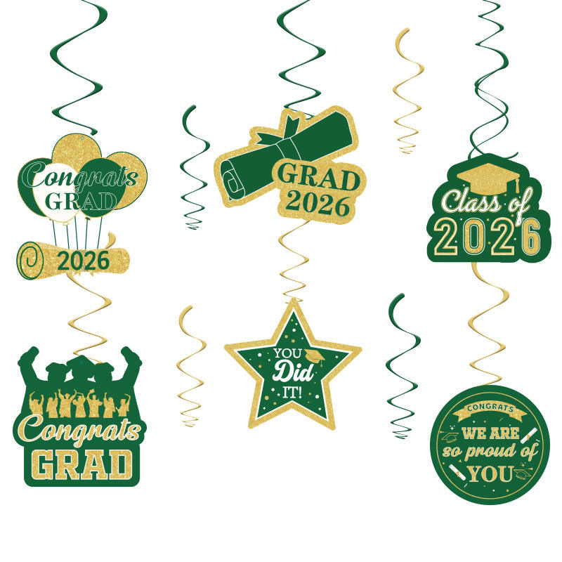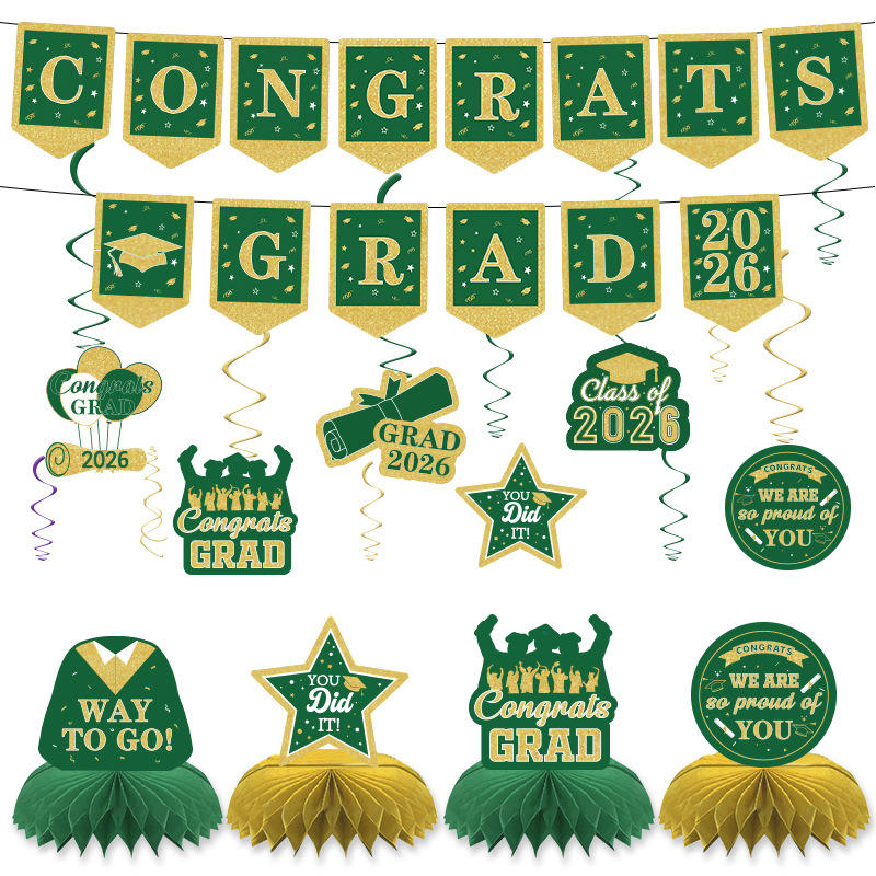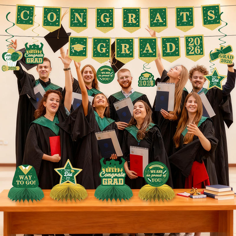DAMAI Graduation Party Decor Includes Congrats Grad Banner Honeycomb Centerpieces Hanging Swirl Kit for Green Congrats Grad