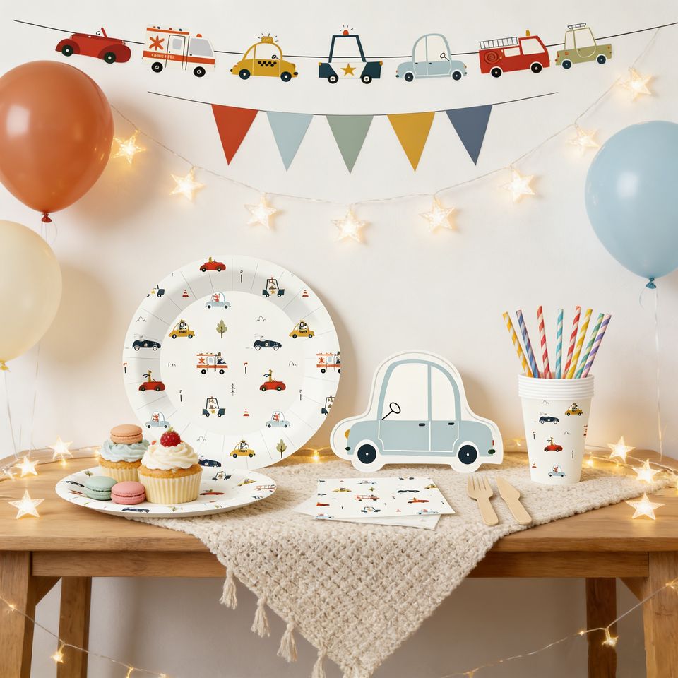 DAMAI Kids Party Tableware Set Car Mold Disposable Plate Paper Cups Napkins for 8 Guests of Children Birthdays Party Decorations