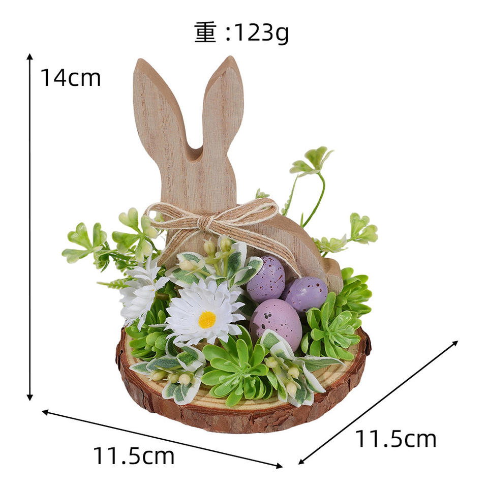 DAMAI Naturalistic Easter Wooden Rabbit Figurine with Faux Eggs Rustic Spring Home & Holiday Table Decor Accessory for Easter